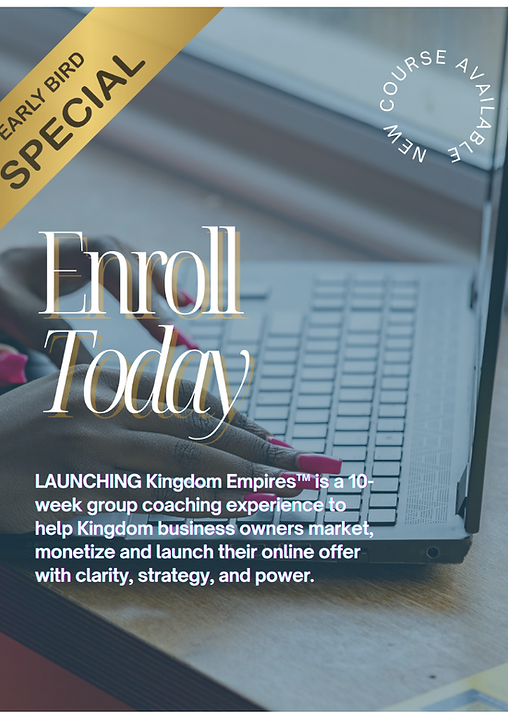 LAUNCHING Kingdom Empires™ is where your calling meets your courage, your strategy meets your spirituality, and your message finally moves with the power, profit, and peace you've been seeking.